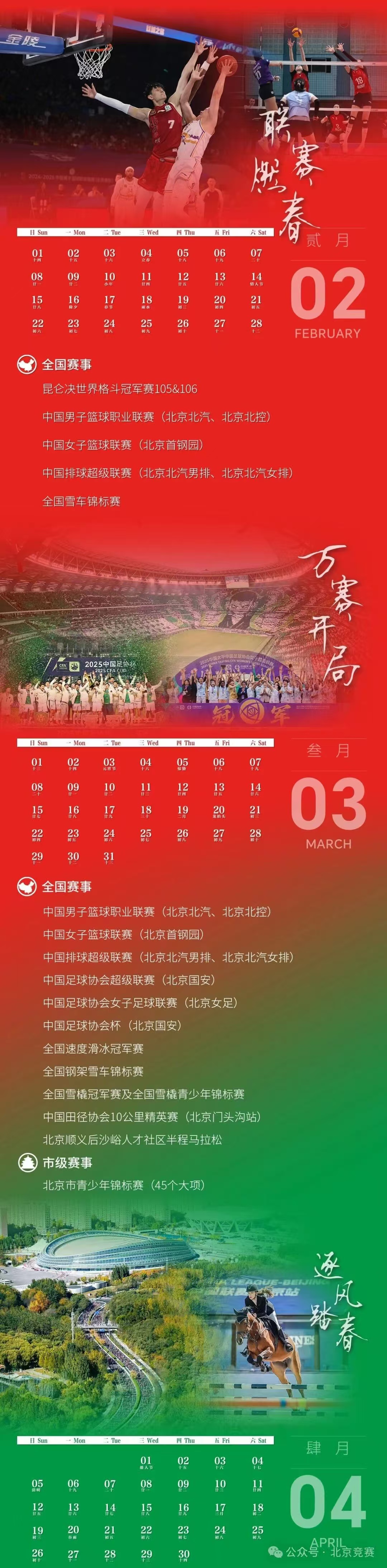 2026年全年北京计划举办各级各类体育赛事千余项,其中纳入“双奥100”赛事体系的精品赛事达206项。在2025年的基础上对赛事体系进一步丰富完善,重点赛事范围涵盖“633”战略项目、传统优势项目、冬季奥运项目和新兴时尚项目,重点赛事场馆辐射全市各区,结合区域特色精准项目布局,持续推动奥运场馆饱和利用和边际效益,延续了“周周有赛事、月月有亮点、季季有精彩”的规划理念,重点赛事贯穿一年四季,比赛日深度绑定节假日、寒暑假,最大限度发挥比赛日经济和假日经济的叠加放大作用。